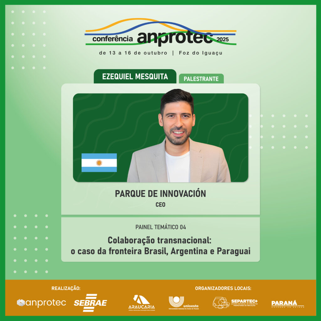 Ezequiel Mesquita é um executivo com mais de 15 anos de experiência promovendo o crescimento e a inovação na indústria metalúrgica e no setor de PMEs. Sua missão é apoiar startups e pequenas empresas a enfrentarem os desafios da Indústria 4.0. Atualmente é Diretor Executivo do Parque de Inovação de Buenos Aires e Diretor Geral de Empreendedores do Governo da Cidade. Foi Gerente Geral da Mesquita Hermanos e Co-fundador da foodtech TAH. No conselho da Mesquita Hermanos, liderou a estratégia organizacional e a expansão internacional da empresa para Bolívia, Paraguai, Uruguai e Brasil. É formado em Governo e Relações Internacionais (UADE), possui diploma em Criptoeconomia (ITBA) e um MBA pela IAE Business School (2022).