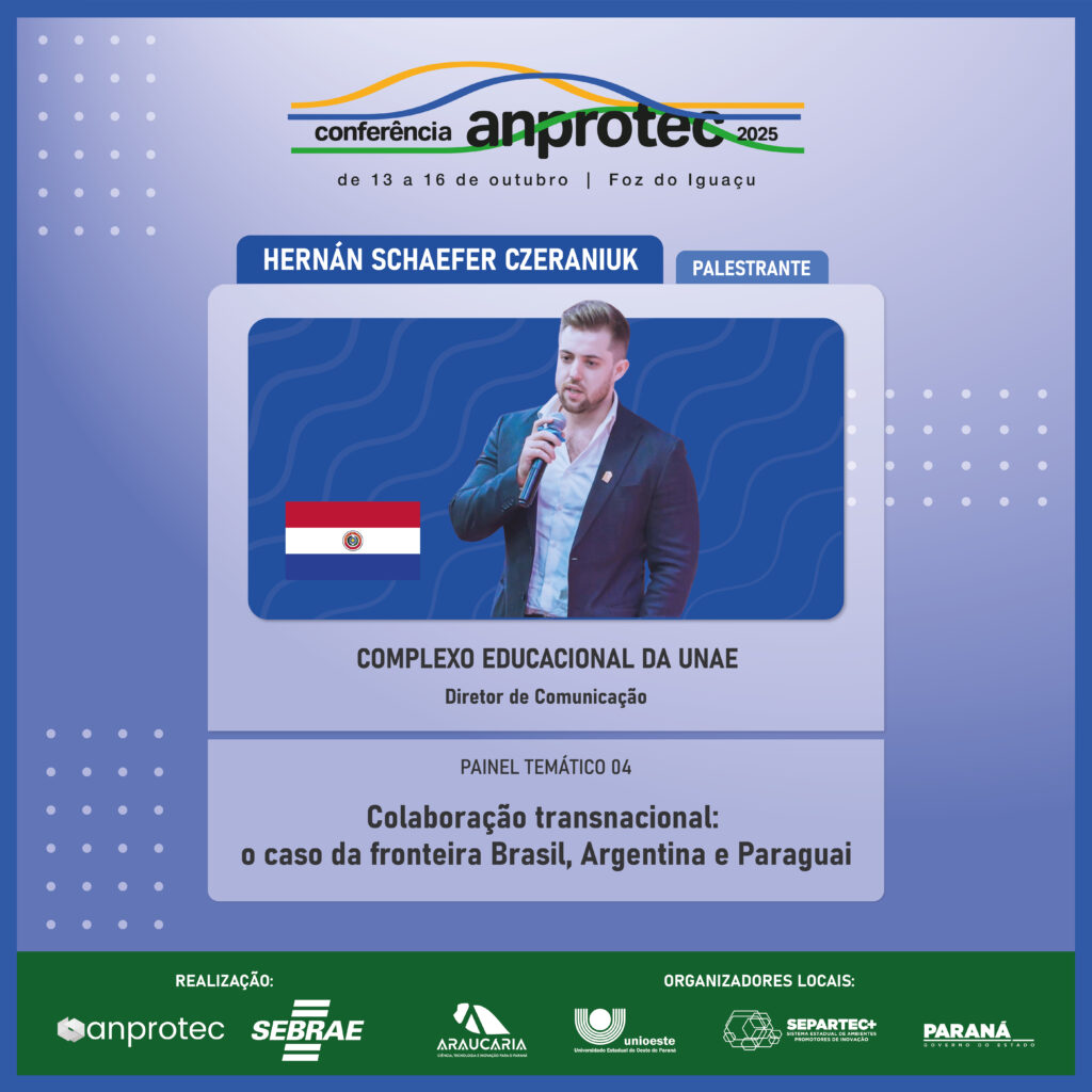 Diretor de Comunicação do Complexo Educacional da UNAE. Diretor do Centro SBDC Encarnación. Professor pesquisador da Faculdade de Ciências Empresariais da UNAE.