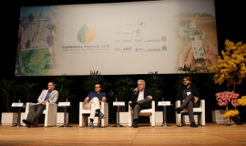 No terceiro dia de Conferência Anprotec, 19 de setembro, acontece a Sessão Plenária “Aprendendo com Cases de Sucesso Agritech”, que contou com a participação do gestor de novos modelos de negócios da Incubadora InovaJab, Diego Silva Siqueira, do sócio fundador da SP Ventures, Francisco Jardim, do CEO da Treevia Forest Technologies, Esthevan Gasparoto, e do ex-presidente da Anprotec e diretor de tecnologia da Fundação de Amparo à Pesquisa do Estado do Rio de Janeiro (FAPERJ), Maurício Guedes, como moderador.