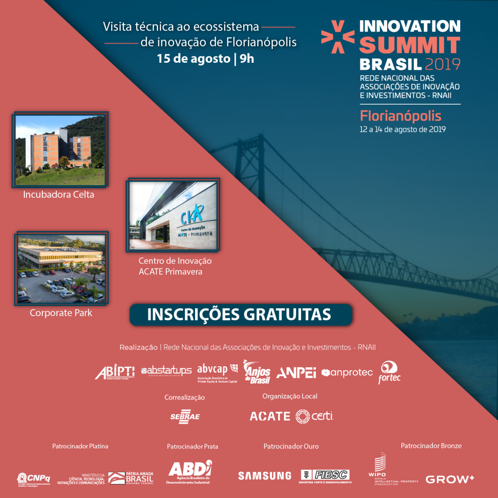 No dia 15 de agosto acontece a visita técnica do evento, com saída às 9h e paradas na Incubadora Celta, no Centro de Inovação Acate Primavera, e no Corporate Park