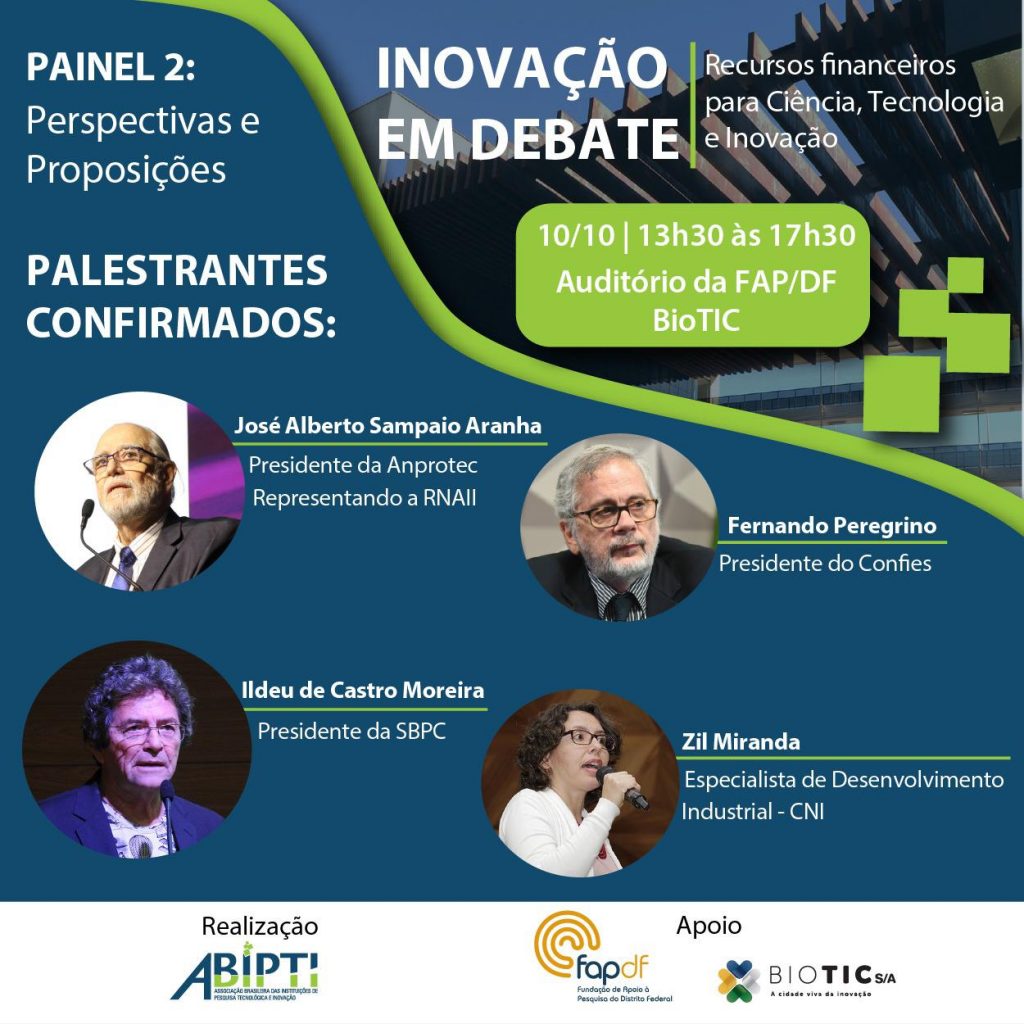 No próximo dia 10 de outubro, o presidente da Anprotec, José Alberto Sampaio Aranha, irá representar a Rede Nacional das Associações de Inovação e Investimentos (RNAII) durante a 3ª edição do “Inovação em Debate”, que tem como tema geral os “Recursos financeiros para Ciência, Tecnologia e Inovação”.