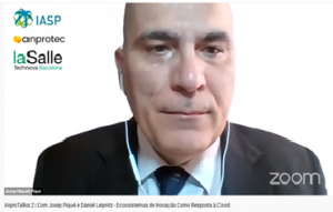 Na ocasião, o vice-presidente da Anprotec, Daniel Leipnitz, moderou o debate sobre “Ecossistemas de Inovação como mecanismos de resposta à Covid e reinvenção do pós-covid“, com a participação do diretor de internacionalização e inovação de La Salle-URL, Josep Piqué.