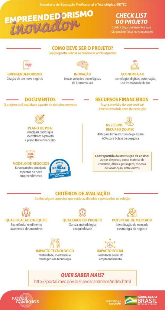 Com execução do Ifes, o edital é uma iniciativa da Secretaria de Educação Profissional e Tecnológica (SETEC), do Ministério da Educação.