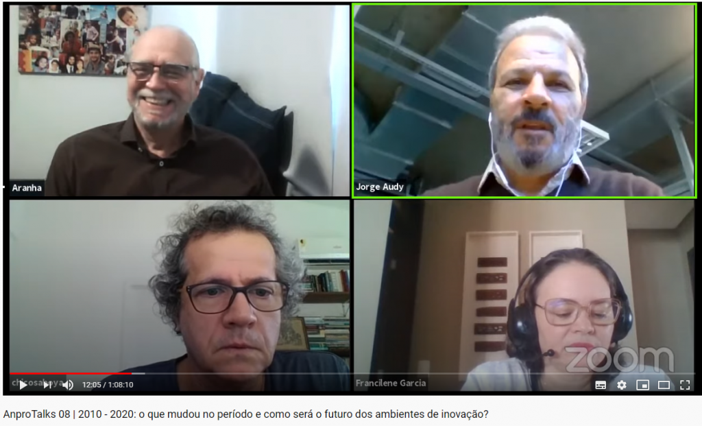 Na última sexta-feira, 10 de julho, os três últimos presidentes da Anprotec estiveram reunidos na oitava edição do AnproTalks, com o atual presidente da Associação, Francisco Saboya, para debater sobre o tema “2010-2020: o que mudou no período e como será o futuro dos ambientes de inovação no Brasil?”.