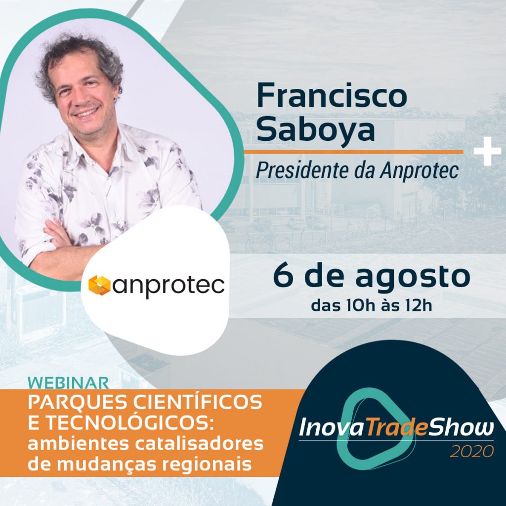 No próximo dia 06 de agosto às 10h, o presidente da Anprotec, Francisco Saboya, participa do webinar “Parques Científicos e Tecnológicos: ambientes catalisadores de mudanças regionais” – parte do InovaTradeShow 2020, organizado pela Fundação Fórum Campinas Inovadora.