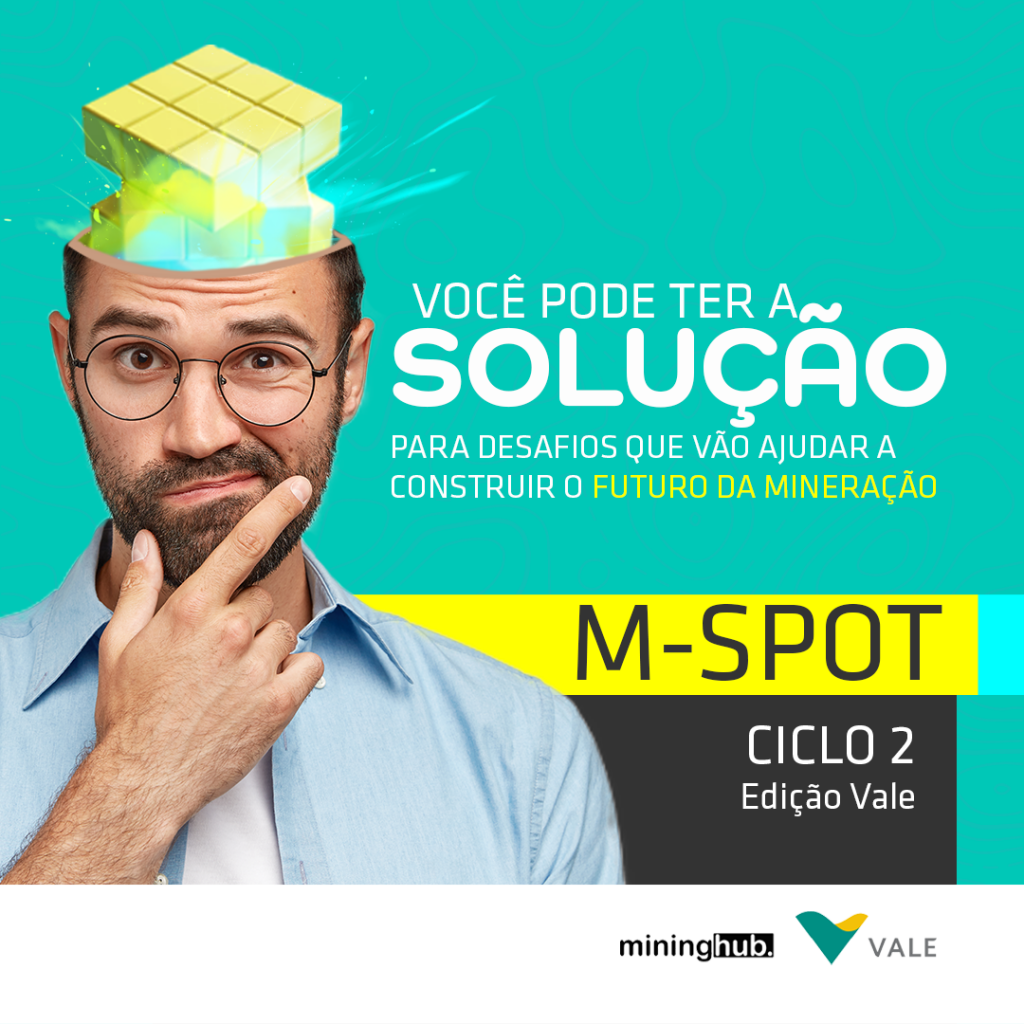 O Mining Hub, em parceria com a Vale, lança, nesta quinta-feira, o M-Spot Ciclo 2, um programa de inovação aberta customizado para solucionar 16 desafios da mineradora em seis diferentes áreas: cadeia de valor, energia, geotecnia, saúde e segurança, gestão de ativos (mina) e gestão de ativos (usina).