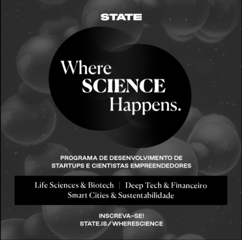 O STATE, hub de inovação independente focado em ciências, cidades e criatividade localizado na cidade de São Paulo, junto com parceiros lançou o programa #WhereScienceHappens. Com um de seus braços focados no desenvolvimento de deep tech e hard science, o STATE aposta neste projeto que irá selecionar 3 startups inovadoras das verticais financeira, sustentabilidade e Life Sciences para ingressarem em seu ecossistema de inovação com a consultoria de parceiros como Atech, AWS, Blanko, CoBlue, EMERGE, FESA X Four, GRIDS, Growth Machine, InvestSP, Le Wagon, Liga Ventures, Nós8, Pipedrive, Quintessa e Textual e apoio do Google For Startups e Sebrae.