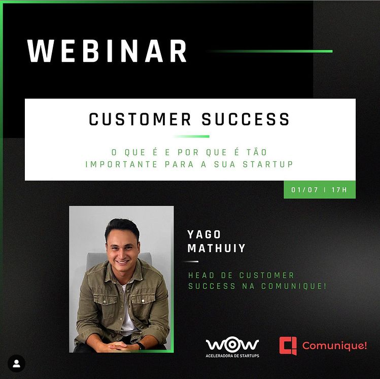 Quinta-feira, dia 01/07 – 17hYago Mathuiy, Head de Customer Success da Comunique, já capacitou +5.000 alunos e mentorou mais de 150 empresas no último 1 ano e meio, irá compartilhar boas práticas de Customer Success e o porquê é tão importante para sua startup.
