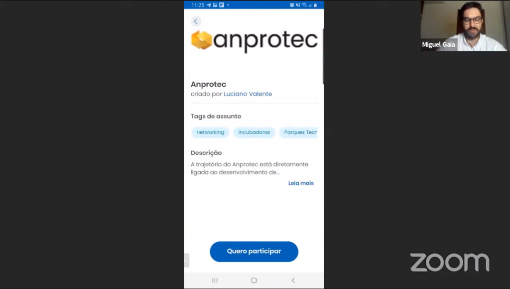 Miguel Gaia, sócio-fundador da empresa, comentou sobre o app e mostrou sua interface e utilização durante a live. “Nós trabalhamos o Nexto para cumprir três pilares básicos: troca de conhecimentos, networking mais efetivo e acompanhamento de eventos importantes de parques e centros de inovação em meio a muitos grupos e redes sociais”.