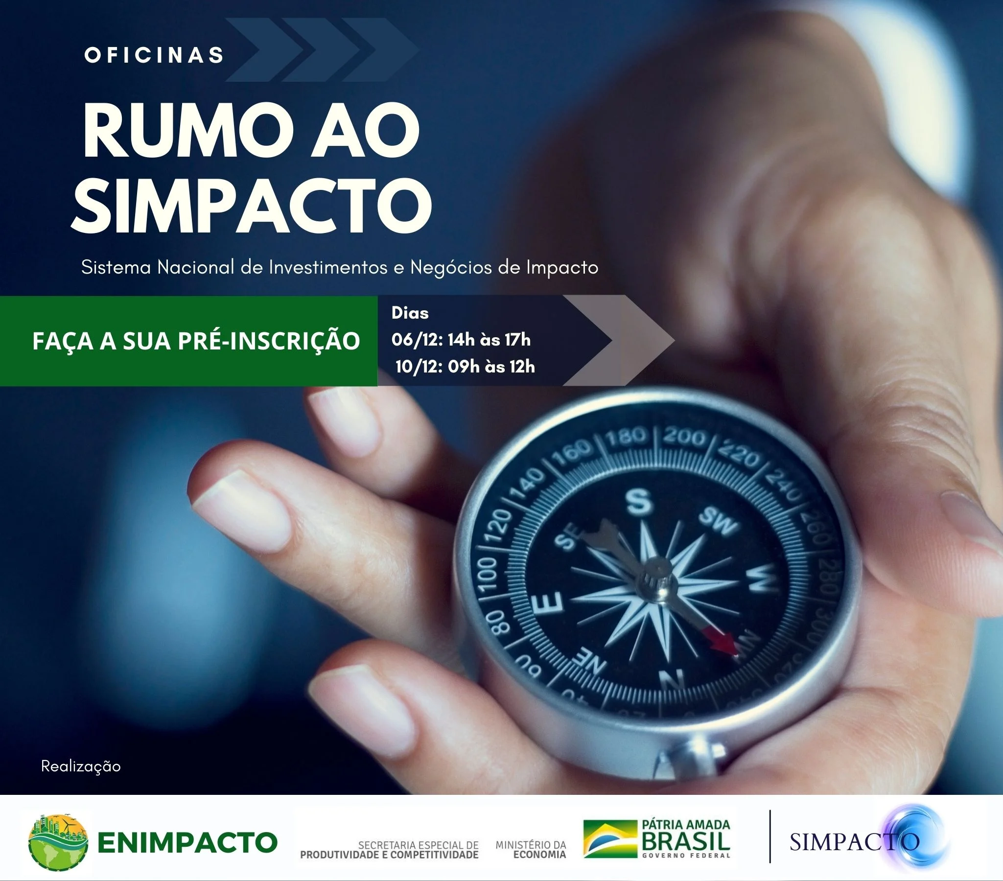 A ENIMPACTO, (Estratégia Nacional de Investimentos e Negócios de Impacto), em parceria com a ENAP (Escola Nacional de Administração Pública) e com agentes públicos e privados de diversos estados, está promovendo a série de oficinas “Rumo ao Simpacto”.