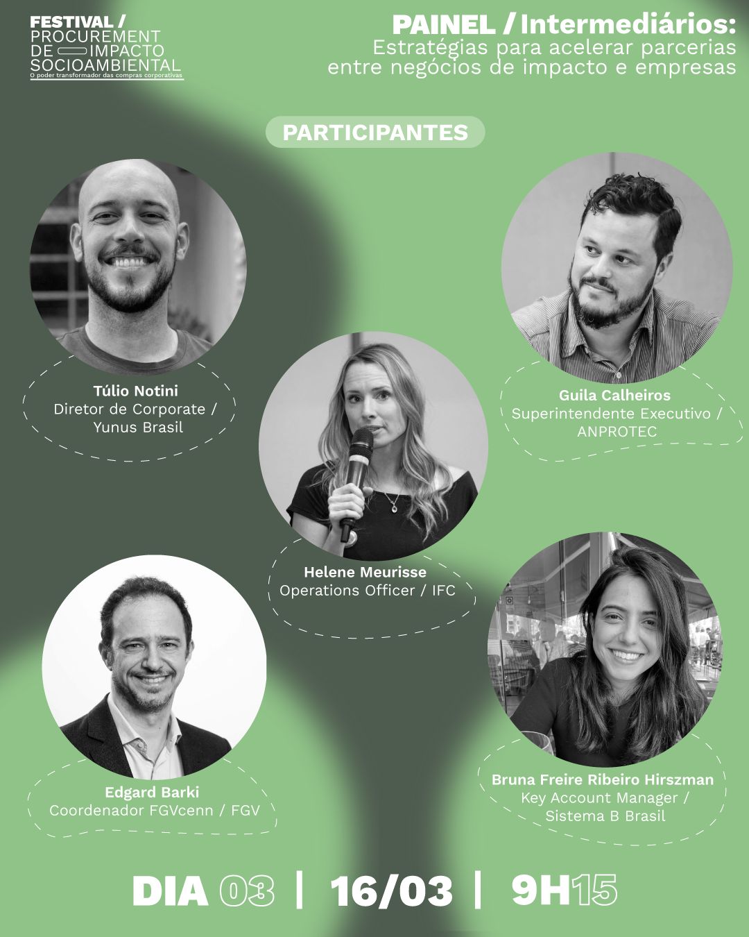 Também participarão do painel Edgard Barki, coordenador da FGVcenn -, Helene Meurisse, operations officer da IFC – International Finance Corporation, Bruna Hirszman, key account manager da Sistema B e Túlio Notini, diretor de Corporate da Yunus Brasil.