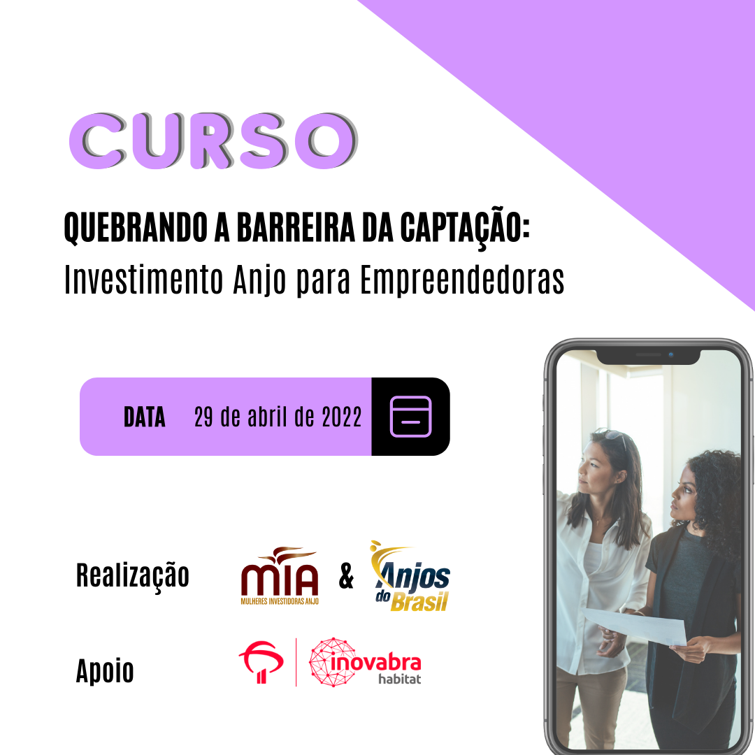Em parceria, a Anjos do Brasil e a Inovabra Habitat, estão realizando um curso para Empreendedoras que estão buscando por investimentos anjo. O curso abrange os principais temas sobre a captação e também trata sobre os desafios específicos para mulheres neste processo, além de comentar aspectos de liderança feminina.