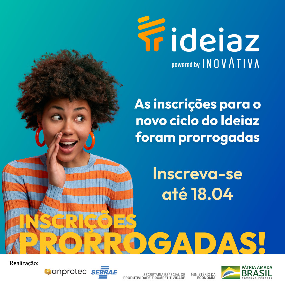 Perdeu o prazo para se inscrever no Programa Ideiaz? Então essa é sua chance! Prorrogamos as inscrições para até o dia 18/4.