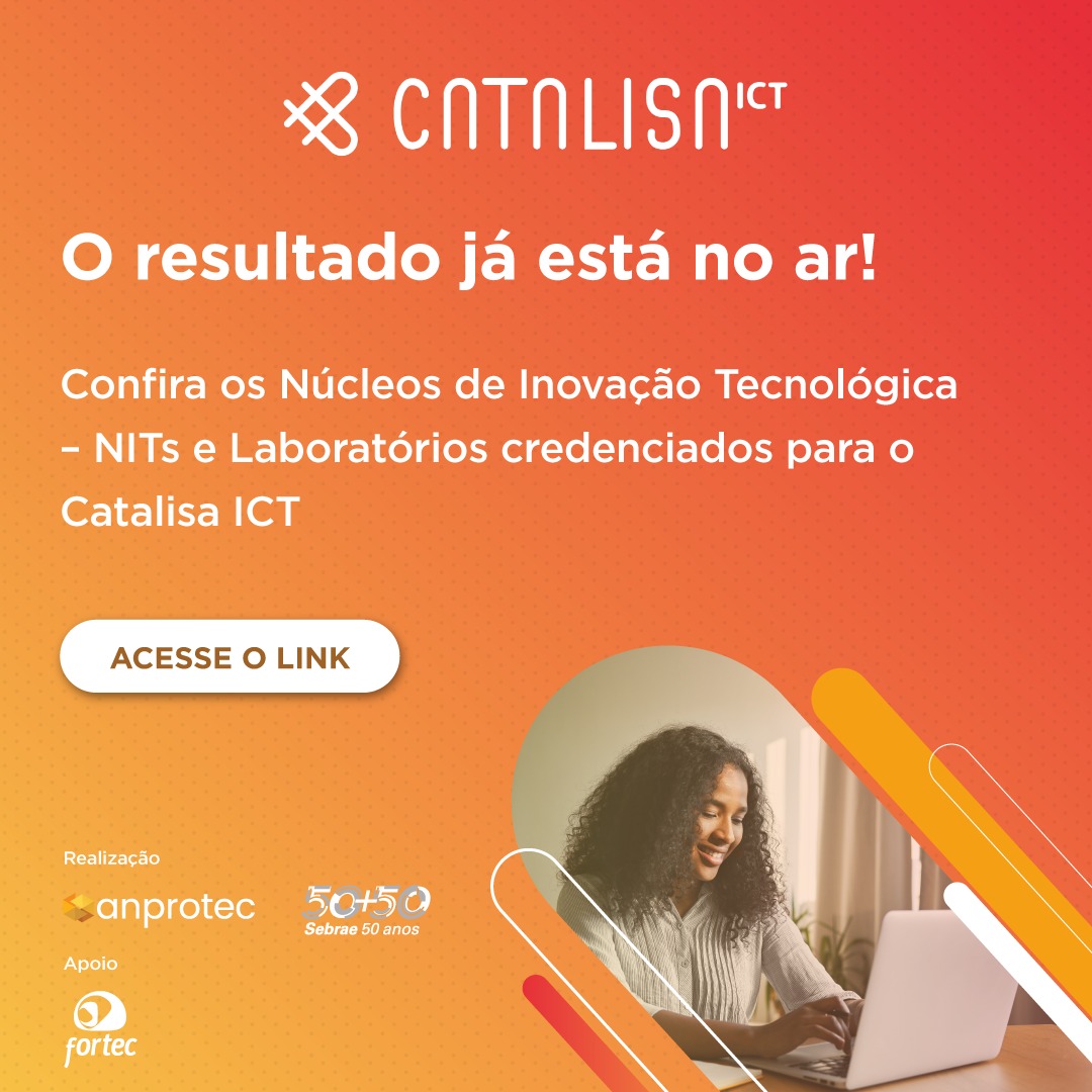 Confira o resultado em https://anprotec.org.br/site/wp-content/uploads/2022/05/Resultado-Chamada-CatalisaICT_NITs-e-Labs.pdf