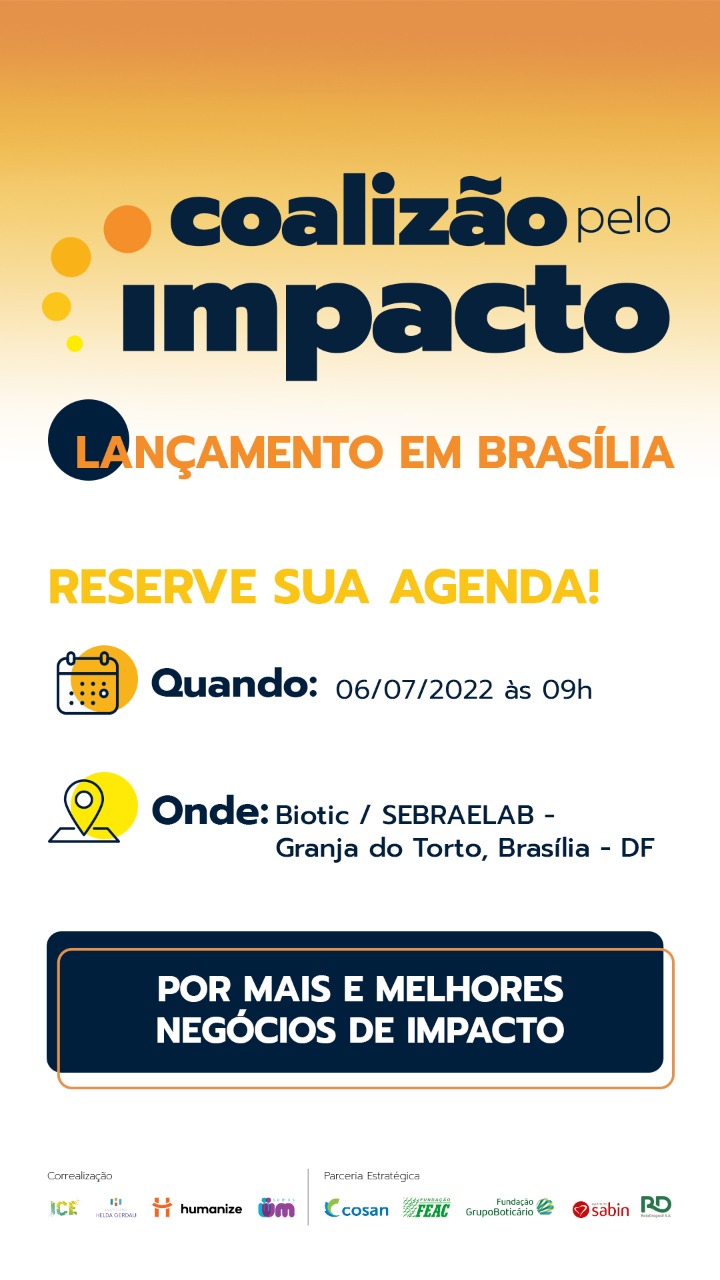 Participe! Dia 6 de julho, às 9h, no Biotic – SebraeLab, na Granja do Torto. Inscrições: https://conteudo.ice.org.br/bsb-coalizao-pelo-impacto