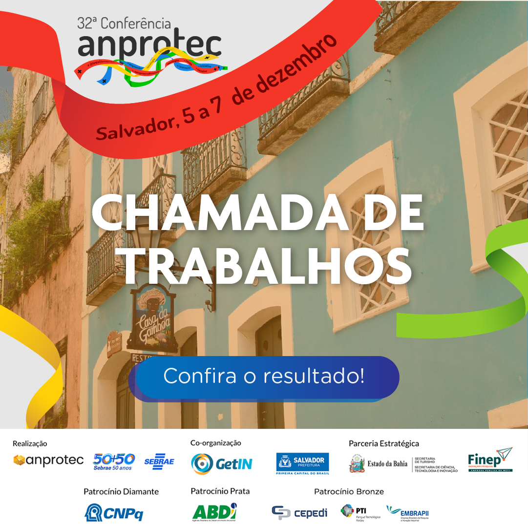Já está disponível o resultado da Chamada de Trabalhos da 32ª Conferência Anprotec de Empreendedorismo e Ambientes de Inovação, que será realizada em Salvador, na Bahia, de 5 a 7 de dezembro.
