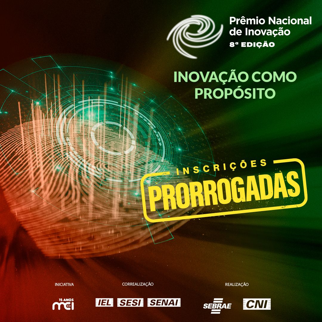 O Sebrae e a Confederação Nacional da Indústria (CNI) prorrogaram as inscrições da 8ª edição do Prêmio Nacional de Inovação (PNI). O prazo, que seria até esta sexta-feira (31/3), foi estendido para o dia 28 de abril. Principal iniciativa de reconhecimento e estímulo à prática de inovação no país, o PNI busca contribuir no processo de aprendizado e possibilitar troca de experiências, auxiliando na identificação de seus pontos fortes e oportunidades de melhorias em inovação e gestão da inovação.