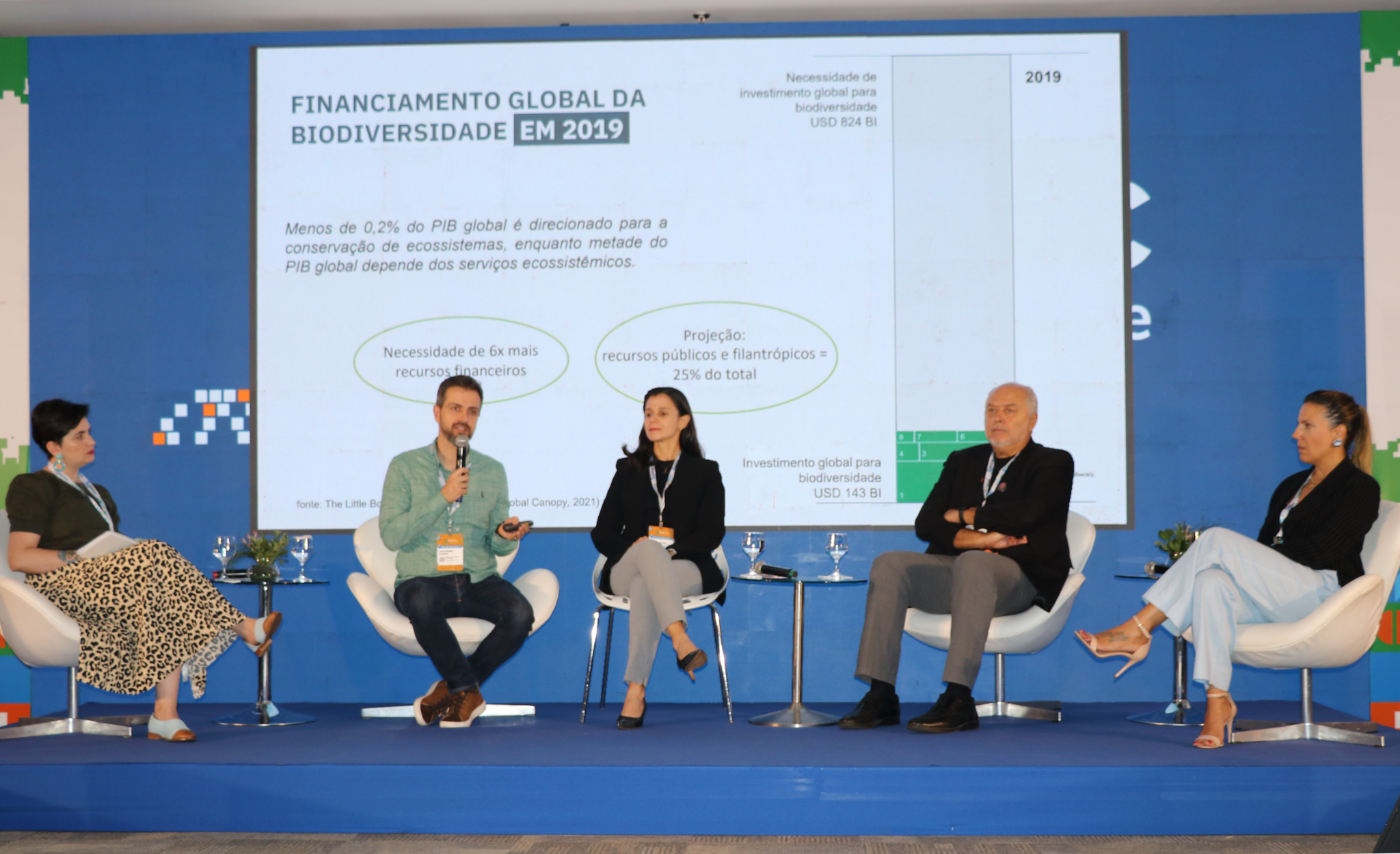 Seguindo essa mesma linha, Guilherme Karam focou seu discurso nos serviços ecossistêmicos, citando a necessidade de uma mudança de abordagem das soluções sustentáveis. “Os serviços ecossistêmicos são todos aqueles que a natureza nos oferece gratuitamente, que são essenciais para a nossa sobrevivência enquanto espécie. A polinização é um exemplo, trilhões de dólares são investidos no agronegócio mundial, que só é possível por conta dela, e é algo gratuito. No entanto, o valor investido para preservar esse ecossistema não chega nem perto disso. Por isso é preciso parar de tratar a preservação como algo filantrópico e mostrar o seu potencial como negócio rentável”.