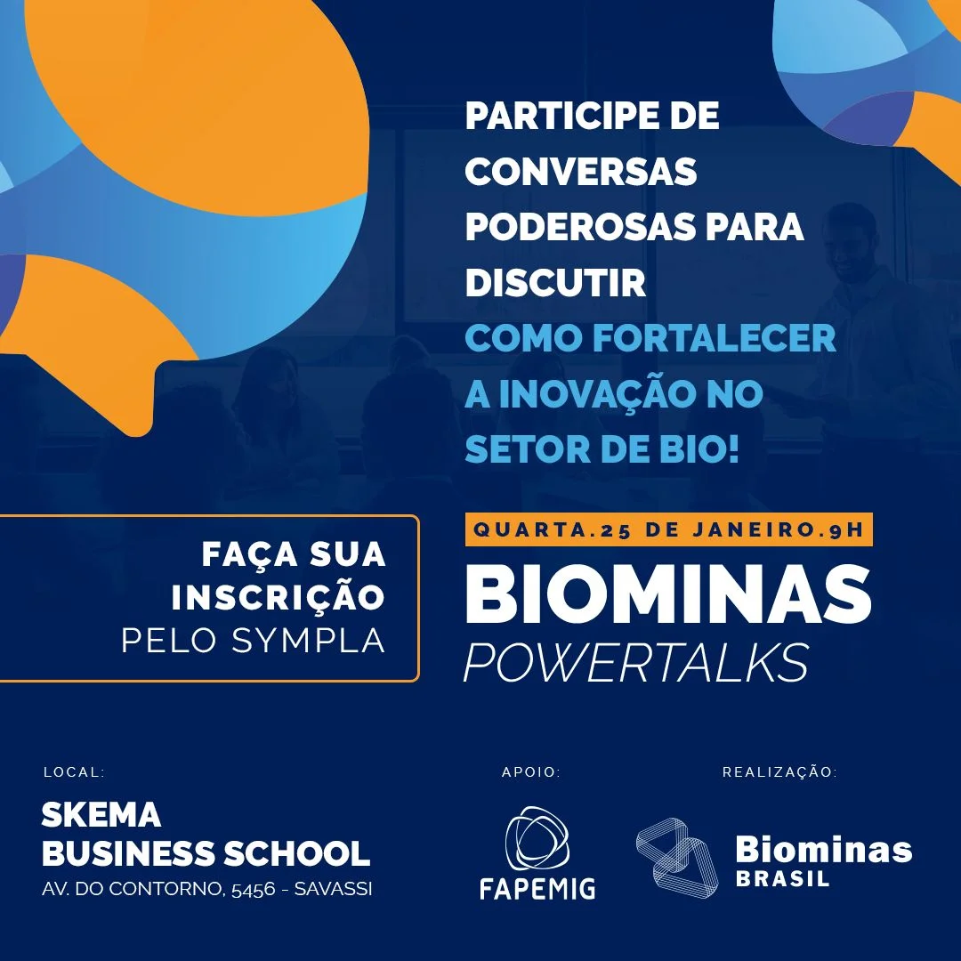 Em janeiro acontecerá, em Belo Horizonte, o Biominas PowerTalks, um evento composto de conversas poderosas para discutir como fortalecer a inovação no setor de bio!
