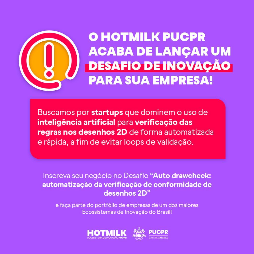 Para vencer estes desafios e dar celeridade aos processos de produção, o Hotmilk (ecossistema de inovação da PUCPR) está lançando uma proposta: apresentar soluções que utilizem a Inteligência Artificial para verificar as regras nos desenhos 2D (formato TIF) de forma mais automatizada e rápida.