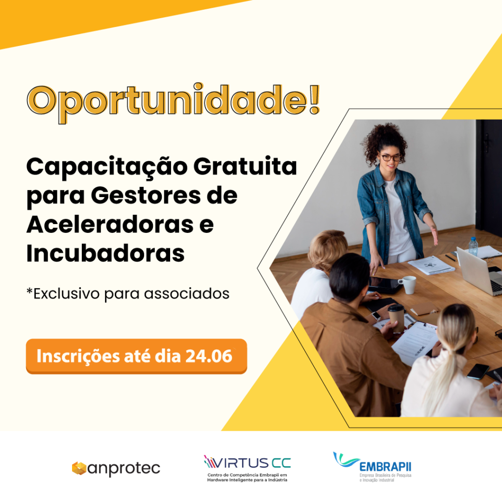 A Anprotec, em parceria com o Centro de Competência EMBRAPII VIRTUS em Hardware Inteligente para a Indústria (VIRTUS-CC), recentemente credenciado pela EMBRAPII, está lançando o programa HA.IA – Hub de Aceleração para Incubadoras e Aceleradoras. O programa oferece capacitação gratuita para gestores de aceleradoras e incubadoras associadas à Anprotec, visando fortalecer o desenvolvimento de startups em tecnologias de ponta.
