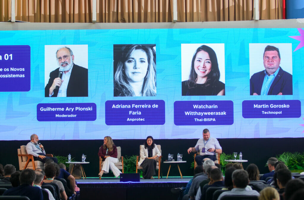 A primeira plenária do segundo dia da Conferência Anprotec 2024, intitulada “Reflexão sobre os Novos Papéis dos Ecossistemas de Inovação”, trouxe discussões profundas sobre como ambientes de inovação podem responder aos desafios econômicos e sociais contemporâneos. Sob a moderação de Guilherme Ary Plonski, nomes como Adriana Faria (Anprotec), Watcharin (Lhing) Witthayaweerasak (Thai-BISPA) e Martin Gorosko (Technopol) compartilharam perspectivas locais e globais sobre a evolução desses ecossistemas.
