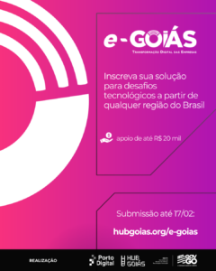 Startups e empresas inovadoras de todo Brasil podem conferir o edital completo e inscrever suas soluções para os desafios no site do Hub Goiás até o dia 17 de fevereiro: hubgoias.org/e-goias