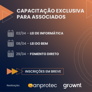As capacitações são exclusivas para associados adimplentes da Anprotec. Inscrições e mais informações serão disponibilizadas no site e nas redes da Anprotec.