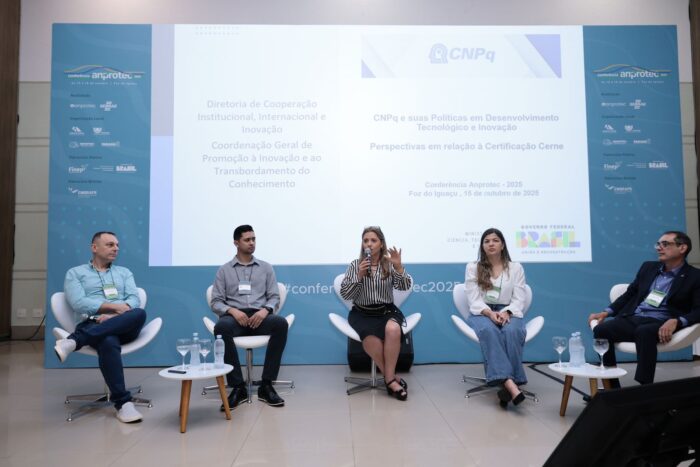 Sob o tema “Inovação colaborativa e Certificação CERNE: fomentando ecossistemas de inovação globalmente integrados”, o painel moderado por Adriana Ferreira de Faria, presidente da Anprotec, reuniu vozes representativas do ecossistema nacional para discutir os impactos tangíveis da certificação sobre a governança, a gestão da inovação e a articulação entre os diversos atores que compõem as redes de apoio ao empreendedorismo. Segundo Adriana, o CERNE é hoje uma das principais ferramentas de fortalecimento da governança e da sustentabilidade dos ambientes de inovação, por oferecer uma metodologia de gestão que profissionaliza as incubadoras e amplia sua capacidade de gerar negócios inovadores e de impacto.