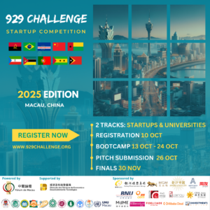 O Consulado Geral do Brasil em Hong Kong, por meio do setor de de Ciência, Tecnologia e Inovação, compartilha que estão abertas as inscrições para a 5ª edição do 929 Challenge 2025, competição para países de língua portuguesa sediada na Região Administrativa de Macau (China), que promove a aproximação entre startups, universidades e o ecossistema da Greater Bay.