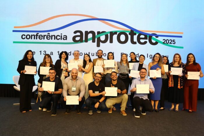 Foz do Iguaçu, 16 de outubro de 2025 – Ontem, 15/10, Durante o encerramento da 35ª Conferência Anprotec, realizada em Foz do Iguaçu (PR), foi realizada a cerimônia de entrega de certificados aos participantes do Projeto HA.IA Deep Techs – Hub de Aceleração para Incubadoras e Aceleradoras em Plataformas de Sensoriamento Inteligente para a Indústria. A iniciativa, desenvolvida pela Anprotec em parceria com o Centro de Competência EMBRAPII VIRTUS (VIRTUS-CC), certificou 31 profissionais de 15 incubadoras e aceleradoras de todo o Brasil.
