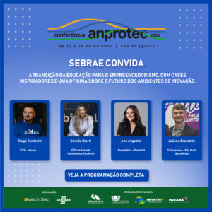 A 35ª Conferência Anprotec será realizada de 13 a 16 de outubro de 2025, em Foz do Iguaçu (PR), com o tema “Ecossistemas colaborativos e integrados à inovação global”. O evento é promovido pela Associação Nacional de Entidades Promotoras de Empreendimentos Inovadores (Anprotec), em parceria com o Sebrae.