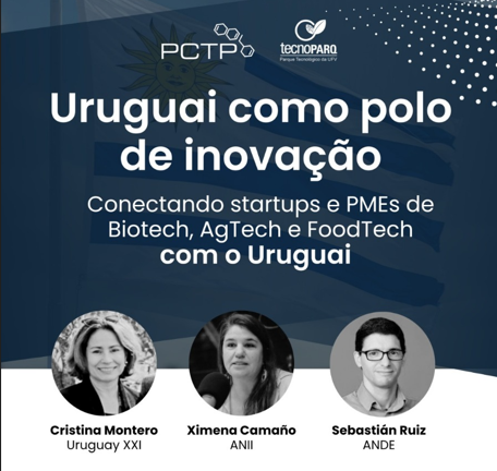 Com foco nos setores de Biotech, Agtech e FoodTech, o encontro reunirá representantes de instituições uruguaias como Uruguay XXI, ANII e ANDE, que destacarão incentivos e programas voltados ao fortalecimento do ambiente de inovação local.