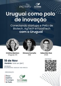 O TecnoPARQ, em parceria com o Parque Científico e Tecnológico de Pando (Uruguai), realiza no dia 18 de novembro, às 10h, no formato online, o evento “Uruguai como Polo de Inovação”. A iniciativa apresentará as principais oportunidades de cooperação, investimentos e internacionalização para startups e empresas de base tecnológica interessadas em expandir operações para países vizinhos.