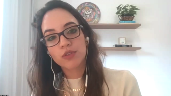Para dar continuidade ao webinar, Anna Claúdia Alves exemplificou as questões apontadas por Gabriela Santos a partir do compartilhamento da trajetória da Recombine Biotech, uma startup de tecnologia recombinante aplicada ao agronegócio.