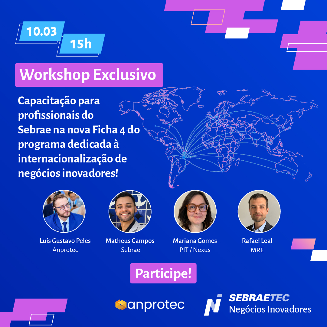 Desenvolvida em parceria entre Anprotec, Sebrae Nacional, Sebrae São Paulo e o Parque de Inovação Tecnológica de São José dos Campos (PIT), a Ficha 4 foi desenhada para reduzir riscos e acelerar a curva de aprendizado das empresas que buscam acessar mercados globais. Estruturada em até cinco meses de atendimento, a solução contempla diagnóstico de prontidão internacional, mentorias para construção do Canvas de Internacionalização, capacitação para pitch internacional e conexão com interlocutores reais no exterior.