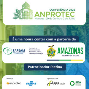 A Fundação de Amparo à Pesquisa do Estado do Amazonas (Fapeam) é patrocinadora Platina da 36ª Conferência Anprotec de Empreendedorismo e Ambientes de Inovação, que será realizada de 29 de junho a 2 de julho de 2026, em Manaus (AM). O anúncio reforça o compromisso da fundação com o fortalecimento dos ecossistemas de inovação no Brasil, especialmente no contexto do evento promovido pela Anprotec.